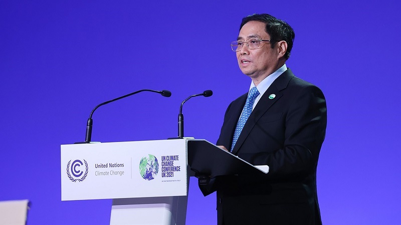 | Thủ tướng Chính phủ Phạm Minh Chính khẳng định Việt Nam sẽ thực hiện các biện pháp mạnh mẽ để đạt mức phát thải ròng bằng 0 vào năm 2050 tại Hội nghị các Bên tham gia Công ước Khung của Liên Hợp Quốc về Biến đổi khí hậu 2021. |